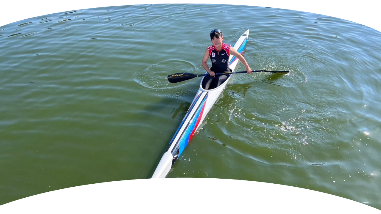 初めて海外にチャレンジしたのは、中学3年生の時でした。同じ所属チームの先輩たちが日本代表として、世界にチャレンジしていく姿と日の丸のついたユニホームに憧れ、いつか私も自然に目指すようになっていました。2024年現在、17歳なので、来年までジュニアとして戦います。そのジュニア期ではまず、国内完全制覇を成し遂げます。500mと200mそれぞれにおいて、インターハイと国体(国スポ)で優勝します。世界大会では今までに日本人初となる決勝進出を達成したので、今後は上位入賞、メダル獲得を目指しています。それらのジュニア期を踏み台に、シニア選手になってからは、ナショナルチームに入って、2028年ロサンゼルスオリンピック、2032年のオリンピックに出場する事を目標としています。今年のパリオリンピックでは日本は出場権を獲得出来ずに、アジア大会が終わった事を考えると、まずはアジアでの優勝も必要となってきます。一昨年のアジア大会ではジュニアの大会ながら個人で準優勝、4人乗りでは優勝を果たしています。更なる高みを目指す為には、ジュニア時代に500mのタイム2分を切る事、シニアでは1分50秒を切る事が不可欠です。