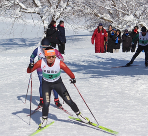 私は、幼い頃からクロスカントリースキー競技を行なっています。地元である長野県山ノ内町はとても雪に恵まれた地域であり、スキーが盛んです。その為、私の生活の中にはいつもスキーがありました。姉の影響で6歳の時にクロスカントリースキーを始め、その世界に一歩踏み出しました。クロスカントリースキーは、下りだけでなく上り傾斜や平坦をスキーとストックを使用して滑ります。走法は2種類あり、フリーとクラシカルに分けられます。フリー走法は名前のとおり自由に滑ることが出来ます。比べてクラシカル走法は、2本のレーンの中に足を入れて滑らなければなりません。スキーの滑走面に、グリップワックスといって、ベタベタするワックスを塗ります。このワックスを塗ることによって上りもレーンに沿って滑ることが可能になるのです。そしてクロスカントリースキーは1.3kmのレースもあれば、50km滑るレースもあります。クロスカントリースキーは個人競技ですが、日々チームメイトと切磋琢磨しながら刺激し合って、個々の目標達成に向けて日々のトレーニングに励んでいます。ゴール後は倒れるほど追い込む過酷な競技ですが、ゴールした時の達成感や、自然の中を自由に滑る感覚に魅力を感じています。
