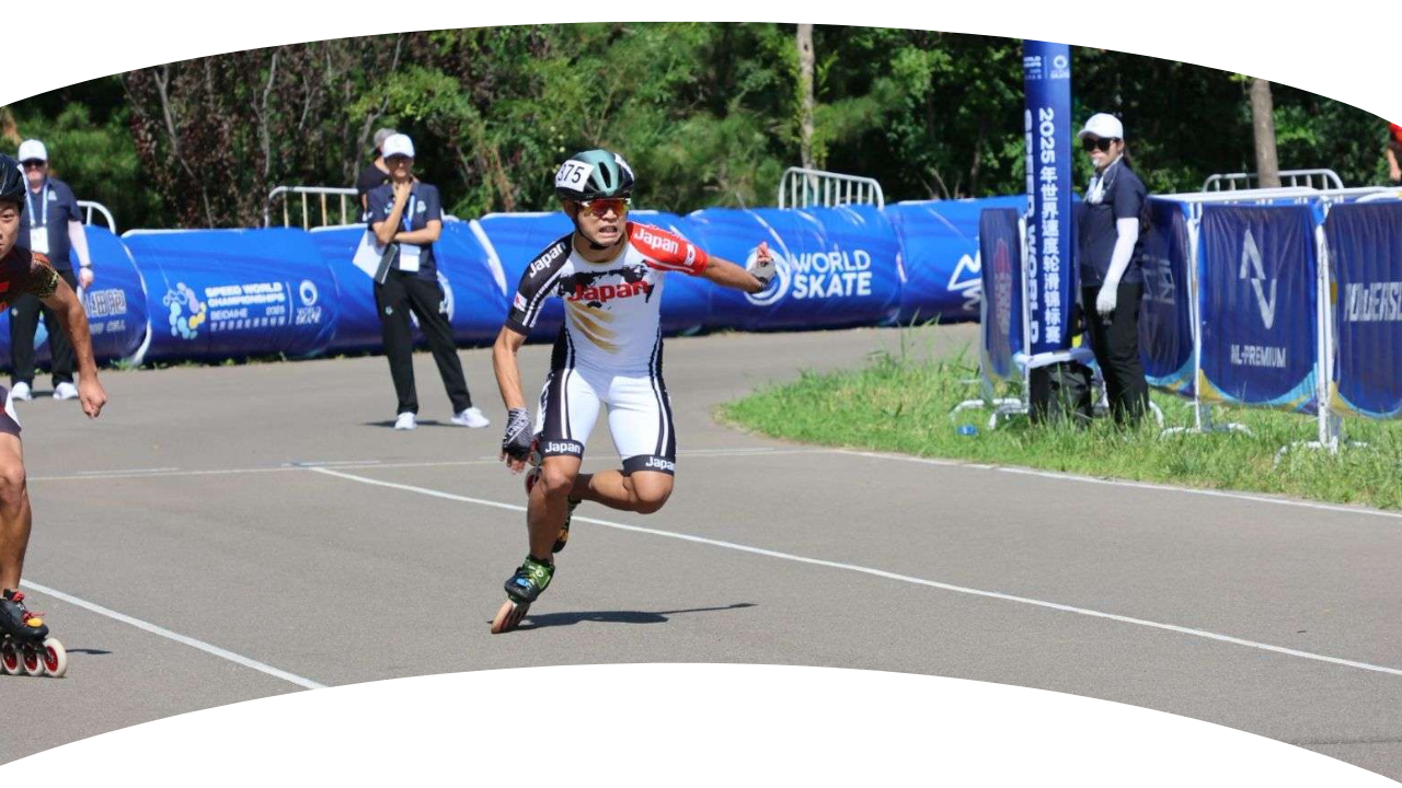 5歳前後のとき、近所の公園に家族で遊びに行っていたことをきっかけに、小学校入学後、地域のクラブチームに加入して競技を始めました。小学校3年生ごろからはスピード競技を中心に活動しています。現在は早稲田大学スケート部スピード部門に所属し、インラインをメインに全日本選手権や世界選手権に出場しています。日本代表に初めて選出されたのは2019年、中学3年の時でした。コロナ禍の影響でしばらく代表派遣がなかった時期もありましたが、2024年から再び日本代表に選ばれ、世界選手権に出場しました。世界のトップスケーターとなるべく、海外での経験や、そこで得た知見を取り入れながらトレーニングを行っています。また、共に練習を行っているGO-BEYONDERの戸取選手の誘いもあり、2021年からはステアクライミング競技(階段競走)にも取り組んでいます。2023年からは国内最高峰のシリーズ戦であるSJC(Stairclimbing Japan Circuit)に参戦し、昨年度(2024年)は総合2位を獲得することができました。現在はステアクライミング競技での初優勝、そして日本チャンピオンを目指して活動しています。