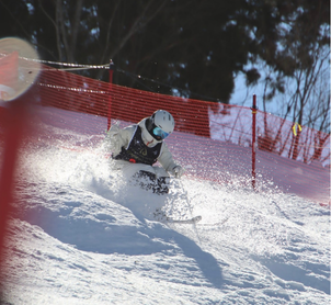 私はフリースタイルモーグルという競技をやっています。フリースタイルモーグルは、ターン・エアー・スピードの三要素で点数を競い合う、一発勝負で30秒前後で決着がつく競技です。私は両親がスノースポーツ好きなこともあり、幼い頃からスキーが身近にありました。自由に滑ることが好きで、たくさん滑っていたことがきっかけで、このスポーツに出会うことができました。モーグルを始めようと思ったのが幼い頃なので、数ある選択肢の中からなぜこのスポーツを選んだのかは今でも謎ですが、初めて練習に参加し、先輩がエアーを飛んでいるのを見たとき、当時の私にはその迫力がすごく、とても魅力的だったのを覚えています。いざ始めてみると、私は人一倍怖がりで、バックフリップもなかなかできませんでしたが、恐怖でなかなか挑戦できなかった技ができるようになったときの達成感から、どんどん好きになっていきました。ターンも繊細な足の使い方をしなければならないため、まともにコースを滑れるようになるまでには時間がかかりました。ですが、自分のやりたかった動きができるようになった瞬間や、自分の成長を実感できたことにやりがいを感じ、とにかくたくさん滑っていました。